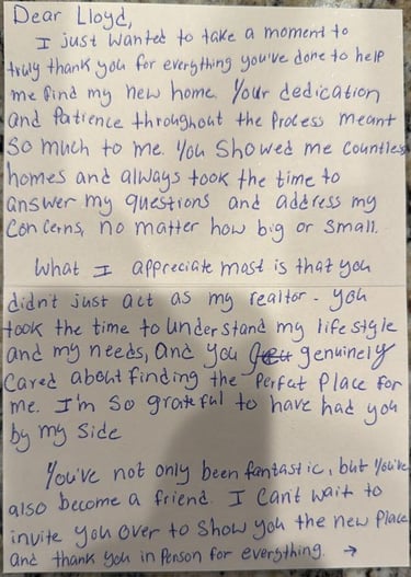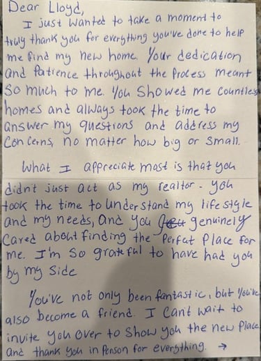 Con un gran corazón para la comunidad y una pasión por hacer que el mundo inmobiliario se sienta más humano, la misión de Lloyd es simple: ayudarte a navegar las transiciones de la vida con confianza, claridad y alegría, un hogar a la vez.